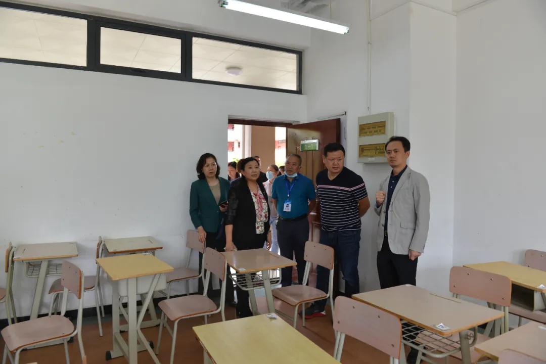 5月22日,贵阳市正县级督学陆明、市教育局党委成员肖文一行到我校检查开学工作。我校党委书记张曦,党委副书记、校长贺永琴,党委副书记、纪委书记唐天,副校长李炳昌、赵雅卫、翟理红及相关部门负责人陪同检查。