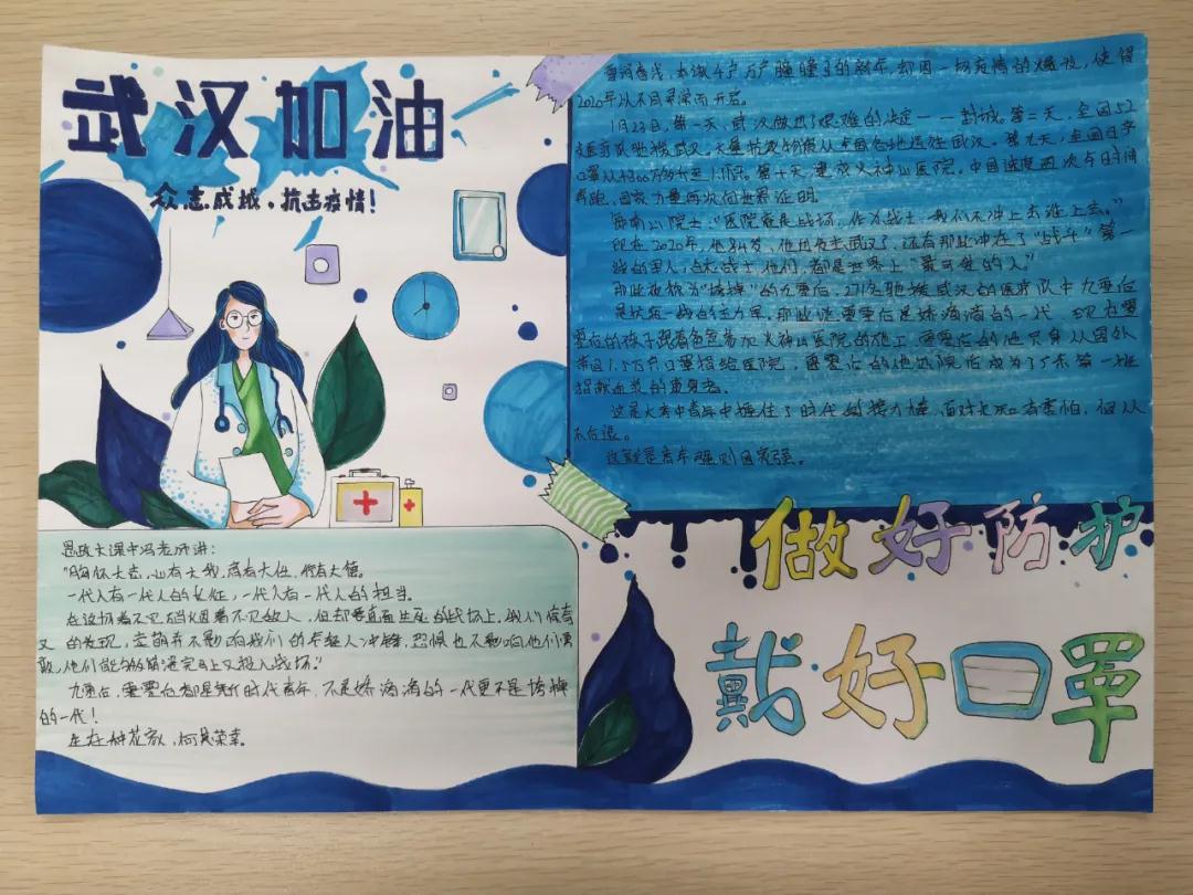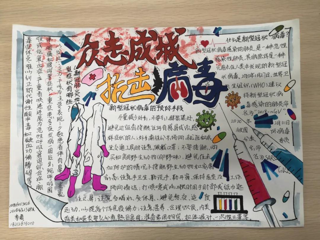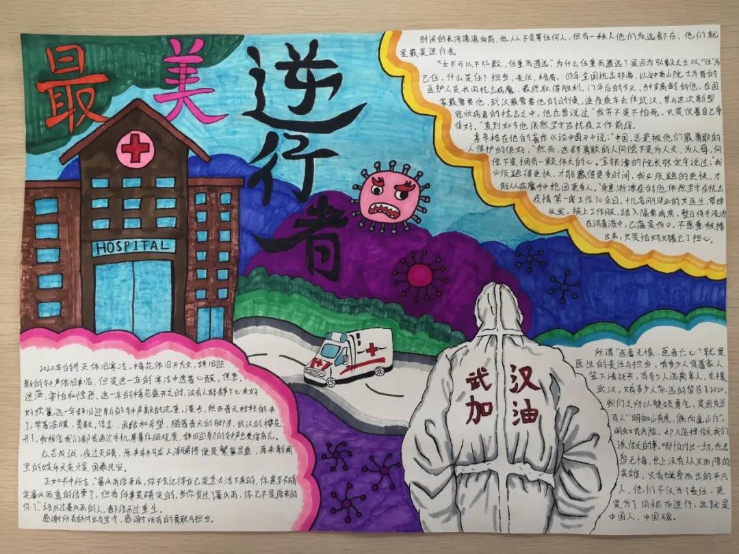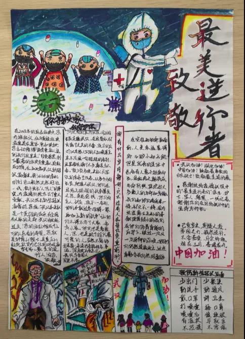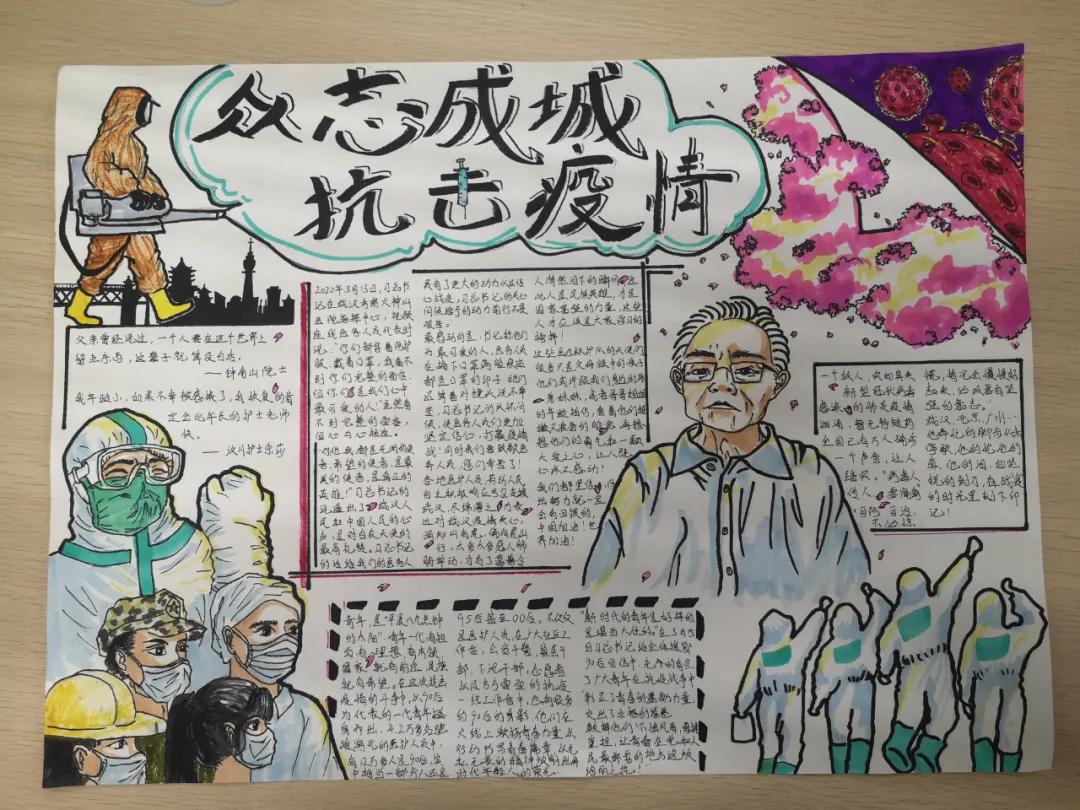 为了更好的进行疫情防控,我校学早系举办了疫情防控系列活动之“抗疫手抄报”展的活动。我校学生在复学后的学习生活中,更加领略了现有的学习生活,是因为无数英雄为我们负重前行。为了表达感谢之情,学生们用生动的文字和画笔致敬了疫情防控中的最美逆行者们,向我们讲述了抗疫英雄故事,弘扬了大爱精神,增强了大家的社会责任感。同时他们也向全体师生普及了疫情防控的科学知识,传播了防疫技巧,倡导科学健康的饮食和生活方式,让我们心连心,众志成城,共同防控疫情!