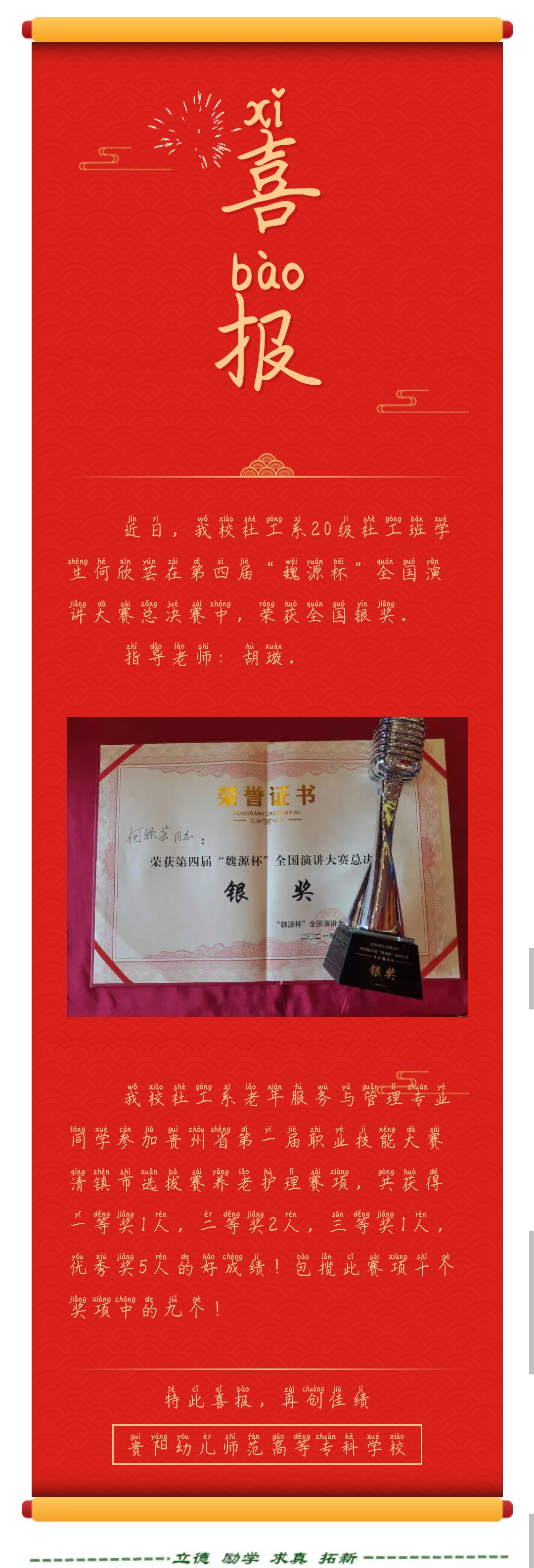 喜报|我校社工系在第四届“魏源杯”全国演讲大赛、贵州省第一届职业技能大赛清镇市选拔赛养老护理赛项中荣获佳绩