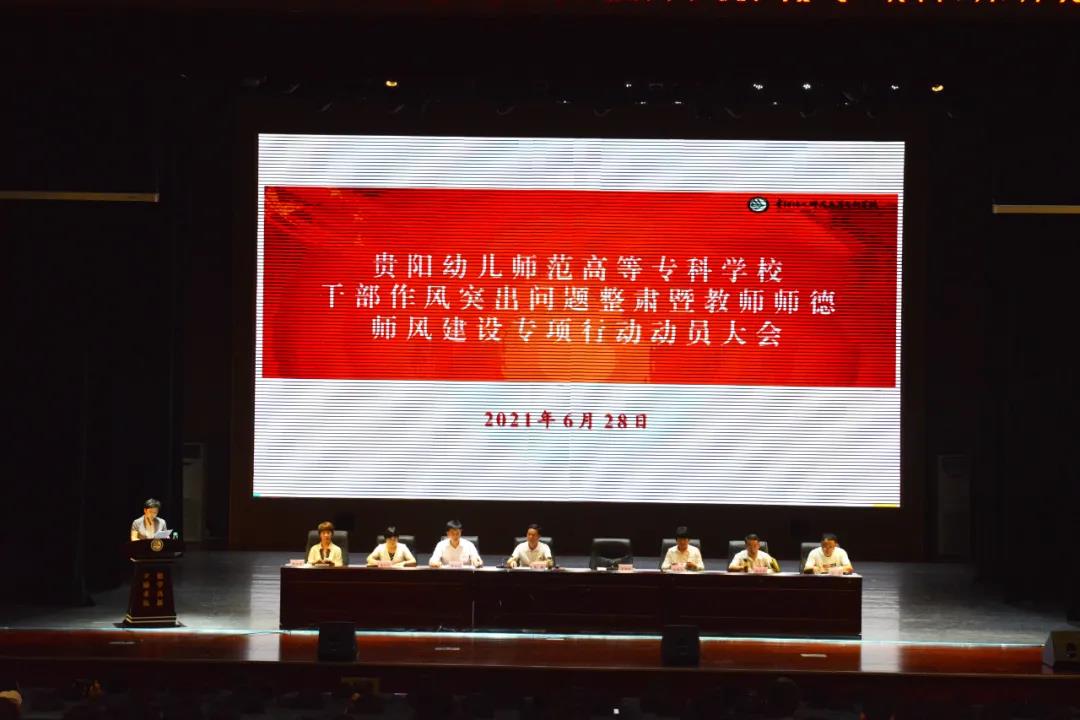 党委书记张曦作动员讲话。他指出,开展干部作风突出问题整肃暨教师师德师风建设专项行动,是学校深入贯彻习近平总书记视察贵州重要讲话精神、切实扛起“强省会”时代使命的重要保障,是坚持为民办实事、解决突出问题的迫切需要,是加强干部队伍建设、确保忠诚干净担当的关键一环。