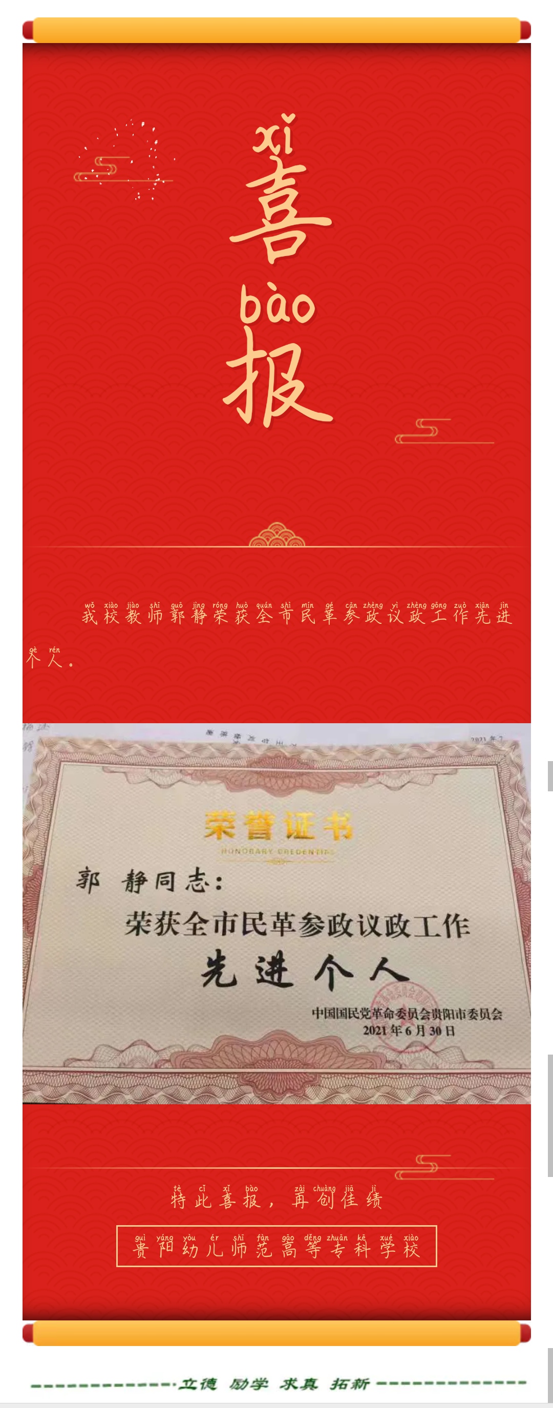 喜报|我校教师荣获全市民革参政议政工作先进个人