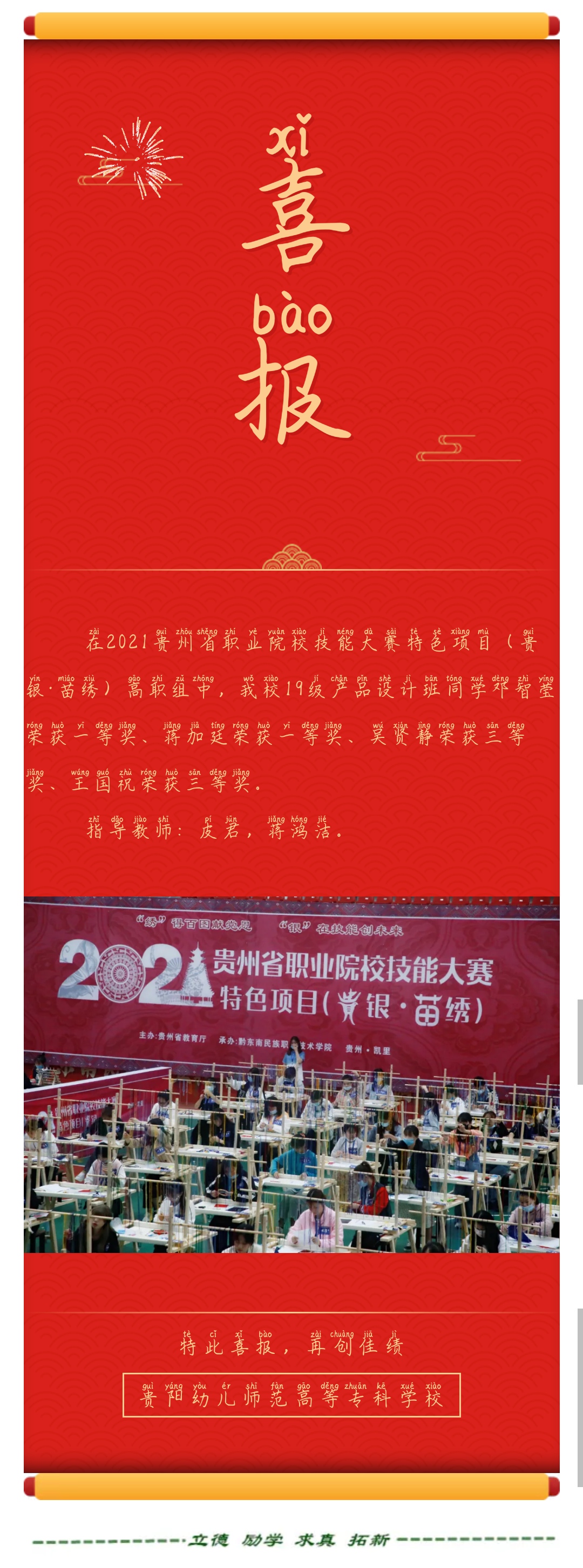 喜报|我校同学在2021贵州省职业院校技能大赛特色项目(贵银·苗绣)高职组中斩获佳绩