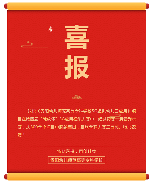 喜报 | 我校《贵阳幼儿师范高等专科学校5G虚拟幼儿园应用》项目在第四届“绽放杯”5G应用征集大赛喜创佳绩
