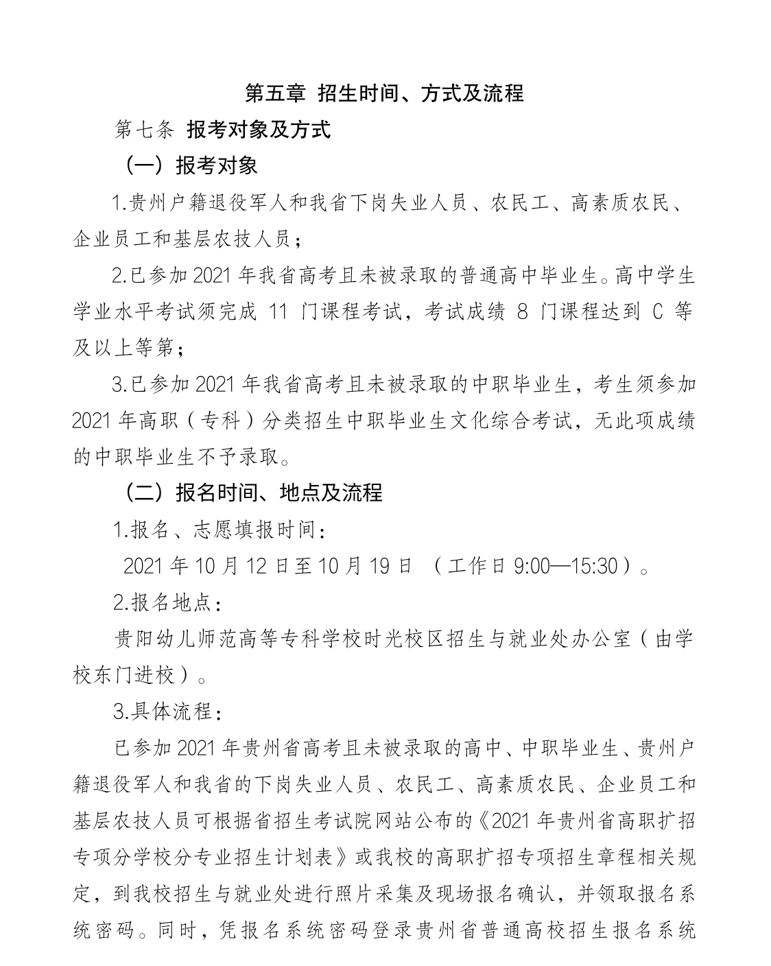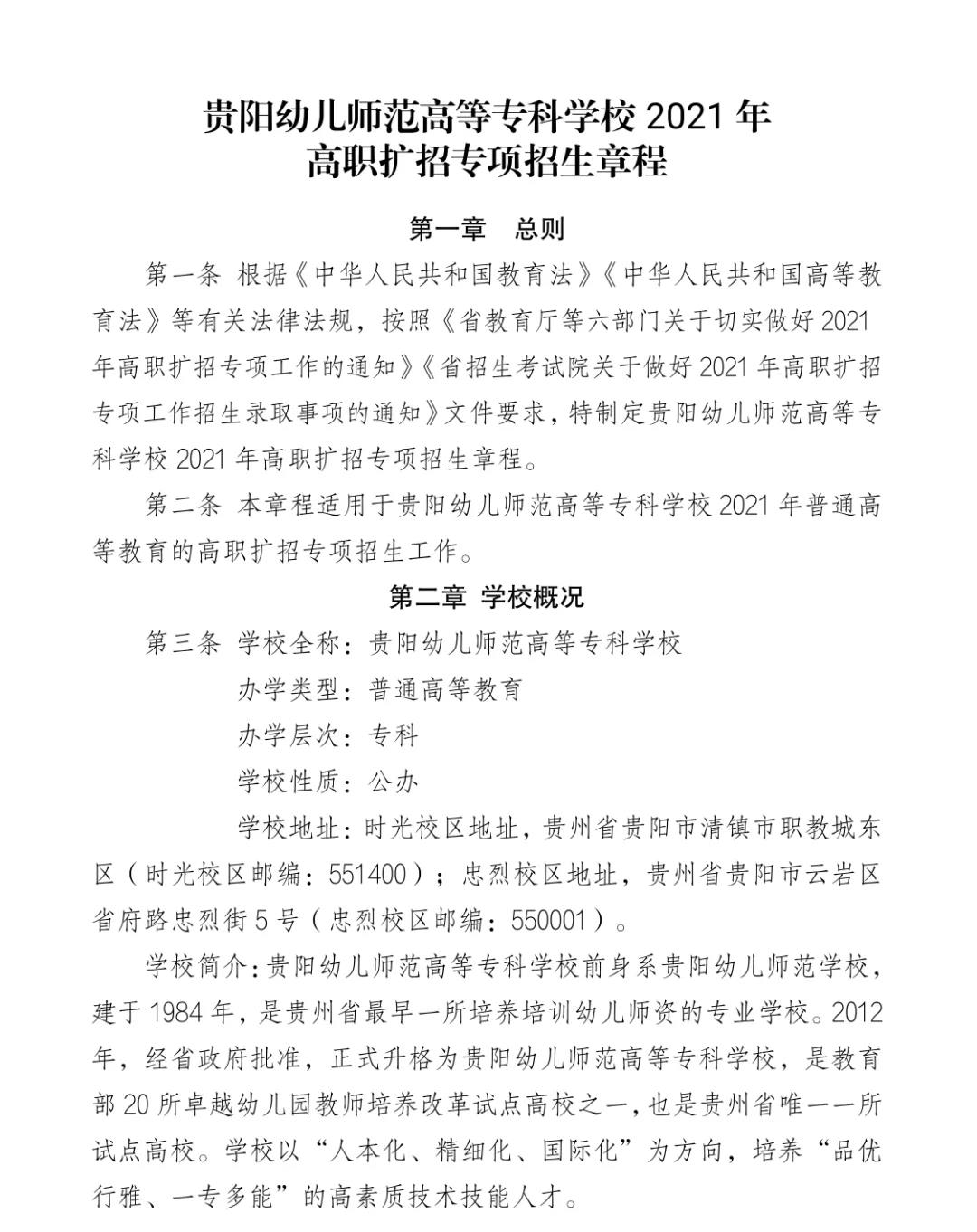 招生信息 | 贵阳幼儿师范高等专科学校2021年高职扩招专项招生章程