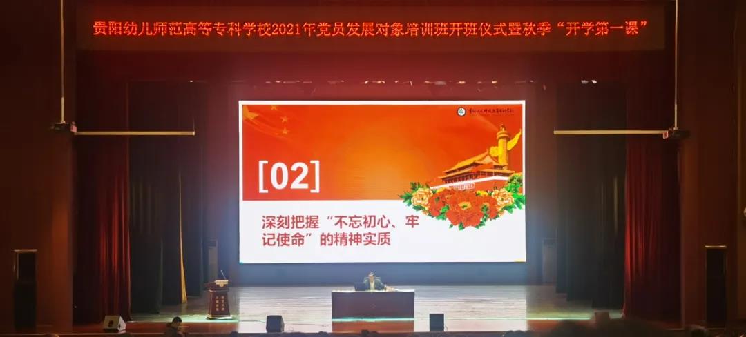 2021年,中国共产党迎来百年华诞,作为新时代的中国青年,作为新征程的主力军,站在两个一百年交汇的历史时期,贵阳幼高专的新生们,将如何理解并践行中国共产党的初心和使命?10月19日下午,我校举行2021年党员发展对象培训班开班仪式暨秋季新学期“开学第一课”活动。党委书记张曦以“如何践行党的初心和使命”为主题为同学们上了一堂别开生面的思政大课。