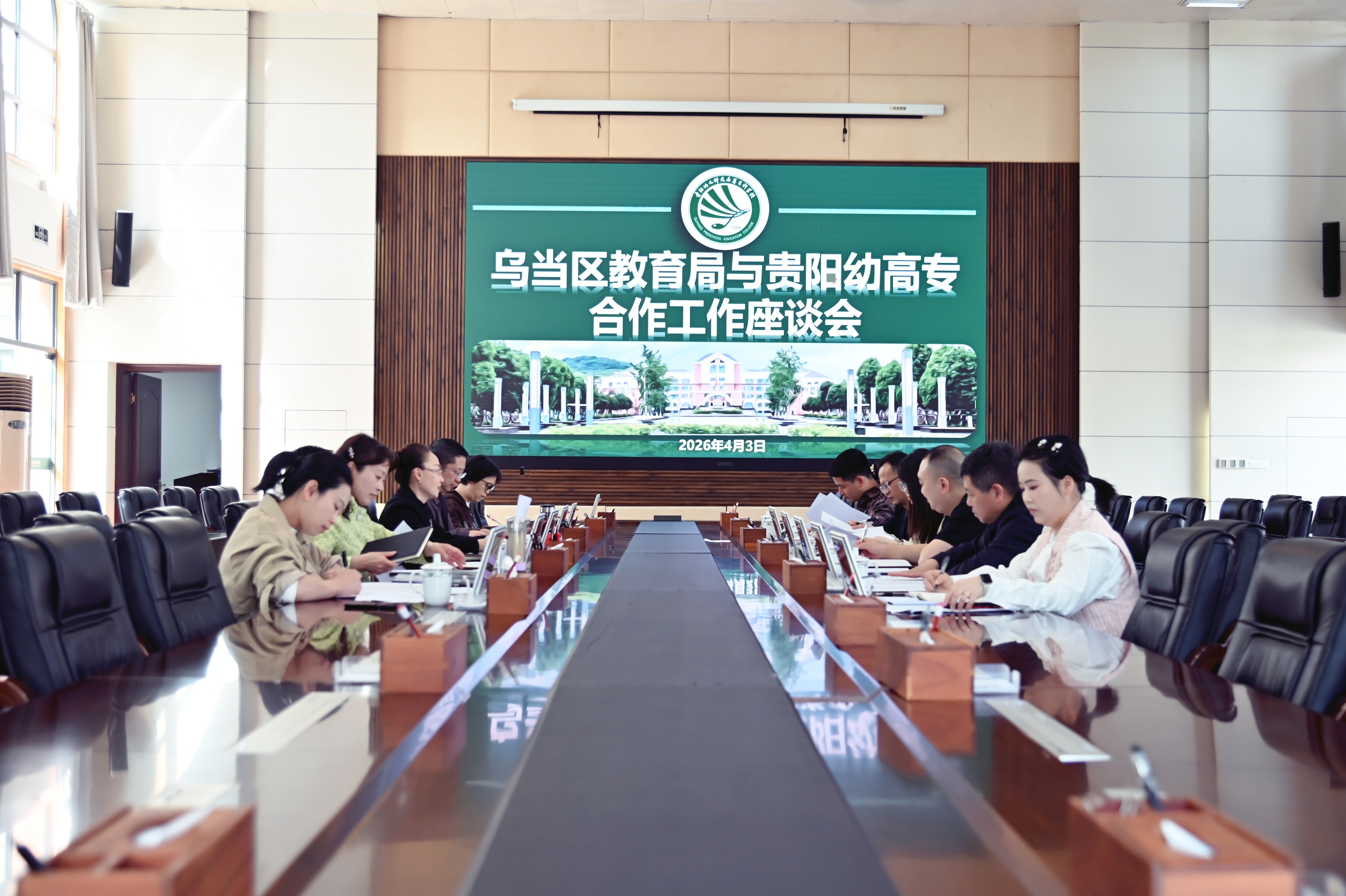 徐伦杰一行分别介绍了乌当区学前教育和中职教育的发展现状,双方围绕幼儿园办学提质、中职教育协同、师资培训、课程共建、实训基地共享、人才双向交流、升学通道搭建等方面进行了深入交流,为深度合作找准契合点,明确合作方向。